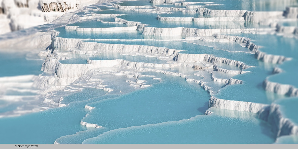 Top three things to do in Denizli 1. Visit the UNESCO thermal pools of PamukkaleA dreamy landscape of white mineral terraces and staggered pools of turquoise – it’s no surprise this ancient place is known as the ‘cotton castle’. Walk down the milky white cliffs and take in the scenery. Experience the rejuvenating and calming effect of the thermal waters, prized for their healing properties.2. Delve into the past at the HierapolisDiscover the Greco-Roman remains at this UNESCO archaeological site including the Roman Theatre, the Temple of Apollo – with its Devil’s Gate passageway to the underworld – and the Necropolis, one of the best-preserved ancient cemeteries in Turkey. Bring your costumes to bathe in Cleopatra's Antique Pool, an oasis surrounded by palms. 3. Step into nature and enjoy outdoor activities Nature lovers can get their dose of greenery in Denizli City Park, the largest in the city, and the Ornaz Vadisi valley, a local gem. If you head a bit further out of the city, you’ll find Kaklik Cave – known as an ‘underground Pamukkale’ with similar white terraces of thermal pools, but under the surface. It’s a breathtaking spot.